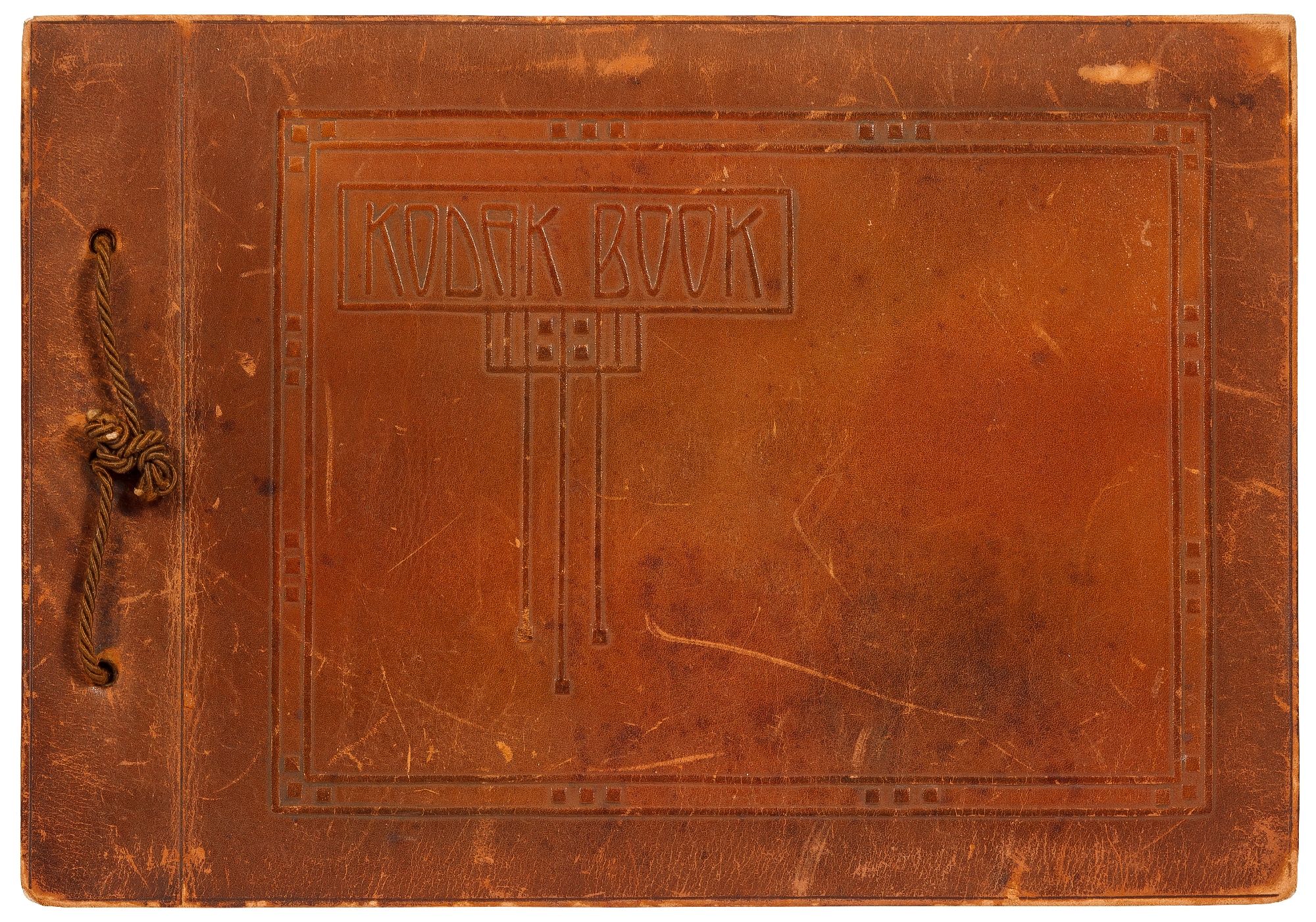 1926. Hardcover. Very Good. Oblong small octavo measuring 8" x 5.5". String-tied brown leather over stiff paper boards with "Kodak Book" blind stamped on the front board. Contains 18 sepia-toned or black and white gelatin silver photographs measuring between .5" x .5" and 5.5" x 7.5". Very good album with rubbing and loose pages with near fine photographs.